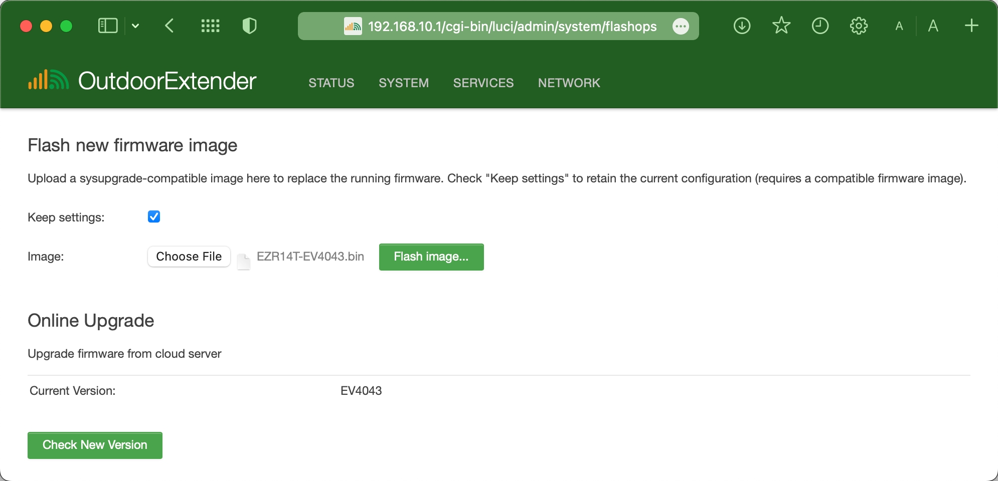 Click "Flash Image" to upload the firmware file;
